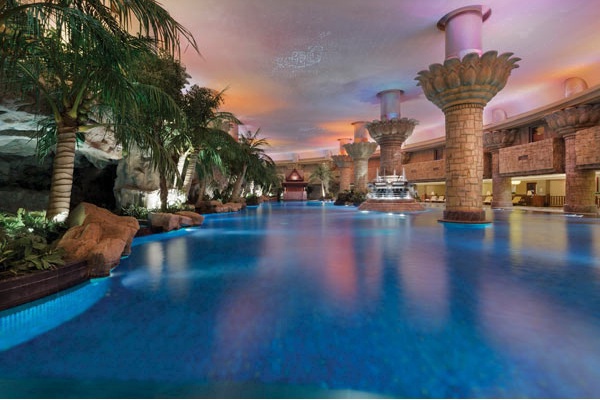 호텔 수영장은 실내 수영장이며, 푸르른 열대식물들이 감싸고 있으며, 폭포, 토템석조, 원시풍격의 돌기둥 장식이 있다. 종려나무 그림자가 수영장 물에 드리우며, 열대우림의 분위기가 있어 남국의 휴양지 같다.