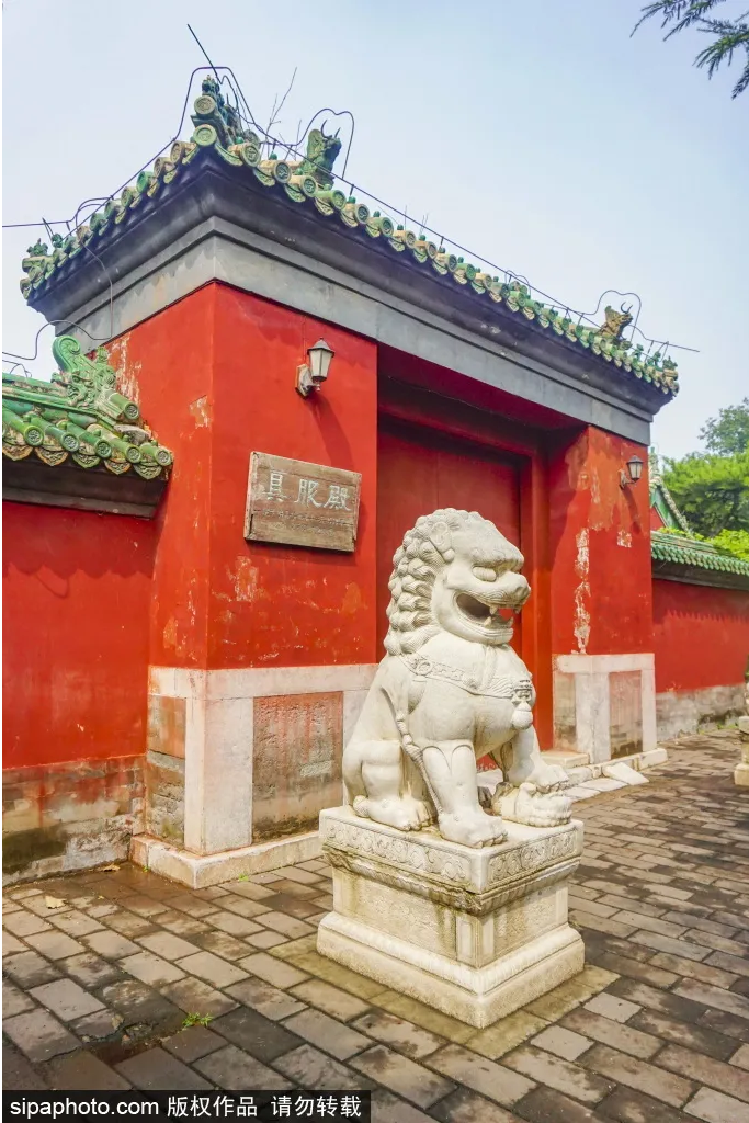 공원 서북쪽에는 방형의 원락 구복전(具服殿)이 있으며, 황제가 휴식을 취하고 옷을 갈아입던 곳이다. 남향이며, 정전은 3칸 규모다. 정전 좌우에 배전이 있으며, 각각 3칸 규모에 주위로 담장이 있다.
