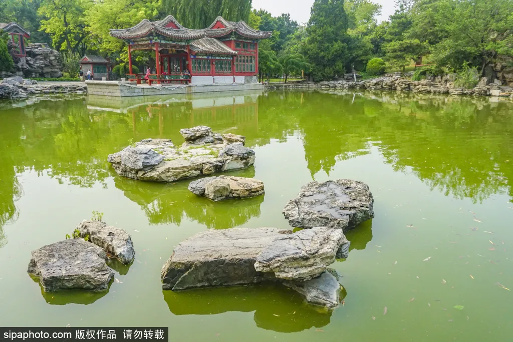 공원 서남부는 산수 풍경의 정원 경치가 있다. 호수 변에는 정자, 화방이 있으며, 여름철 호수 위에는 연꽃이 수놓고 있다.
