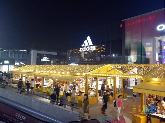 하침 광장(下沉广场)으로 향하는 계단 위에서 내려다보면, 광장 안의 금빛 찬란한 장터- 묘미가(妙趣街)가 눈길을 끈다. 이곳의 많은 작은 물건들은 모두 주인이 수작업으로 만든 것인데, 매우 귀엽고 예쁘다.