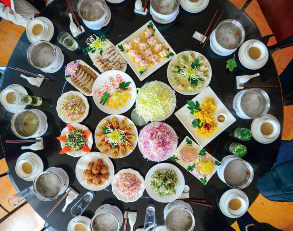 2021년 '셰프, 농촌에 가다' 농촌 돕기 행사에서 선보인 평곡구의 복숭아 요리(平谷区桃宴), 파리대 마을의 파리연(玻璃台玻璃宴), 샘물돌솥두부(清泉石锅豆腐)、국화연(菊花宴)은 모두 특색이 있다.