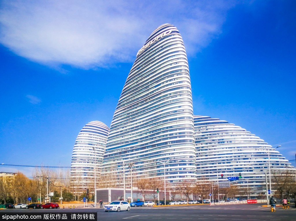 건축 외부는 반짝이는 알루미늄 판과 유리로 뒤덮여 푸른 하늘과 하나가 된다. 왕징의 SOHO는 베이징의 고층 건물에서 두각을 나타내며 현대 도시 발전의 밝은 등불이자 경제 발전의 촉매제가 되었다.