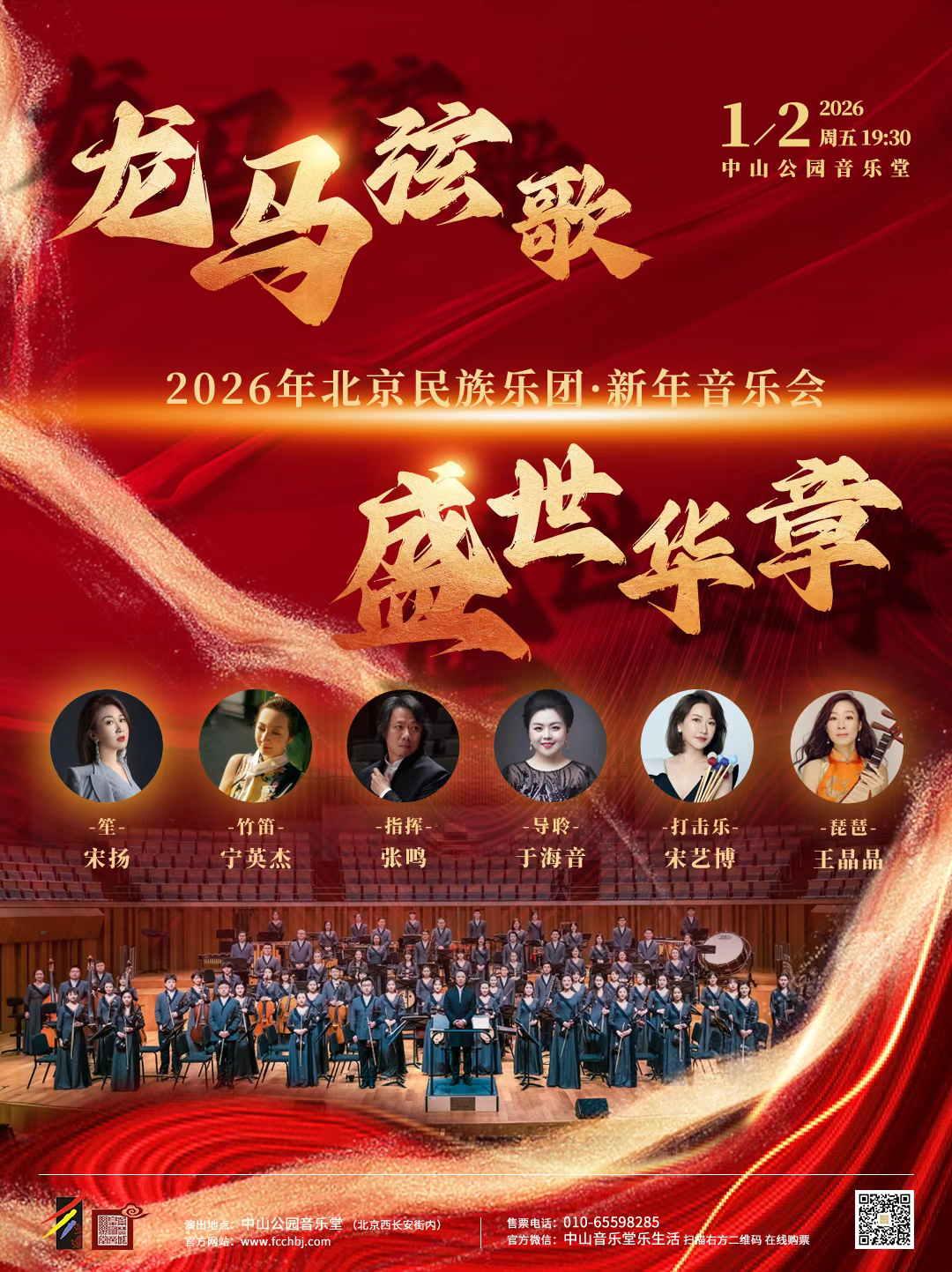 베이징 경극원은 창안 대극장에서 "금사납복 준마영춘—2026 희곡 송년회"를 상연하며, 경극, 곤곡, 평극 등 다섯 개 주요 극종의 최고 세력이 한자리에 모인다. 베이징 민족악단의 "용마현가·성세화장" 신년 음악회, 《춘절 서곡》, 《희상봉》 등 클래식 민악들이 새해 축복을 울린다. 또한, 중국음악학원 민족악단과 상하이, 장쑤, 저장, 안후이 네 지역의 민족악단이 민속 음악회를 열어 지역을 초월한 민속 음악 충돌을 선사할 것이다.