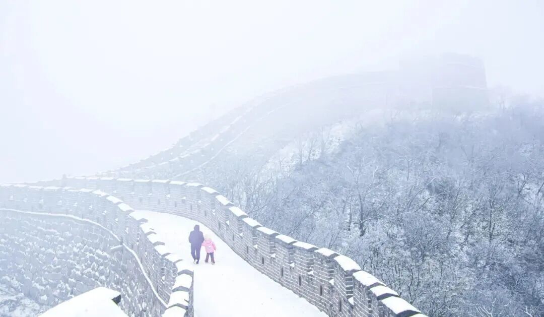 무톈위의 겨울은 이중의 낭만을 간직하고 있으며, 만리장성의 구불구불한 웅장함과 하얀 눈으로 덮인 고요함을 가지고 있다.