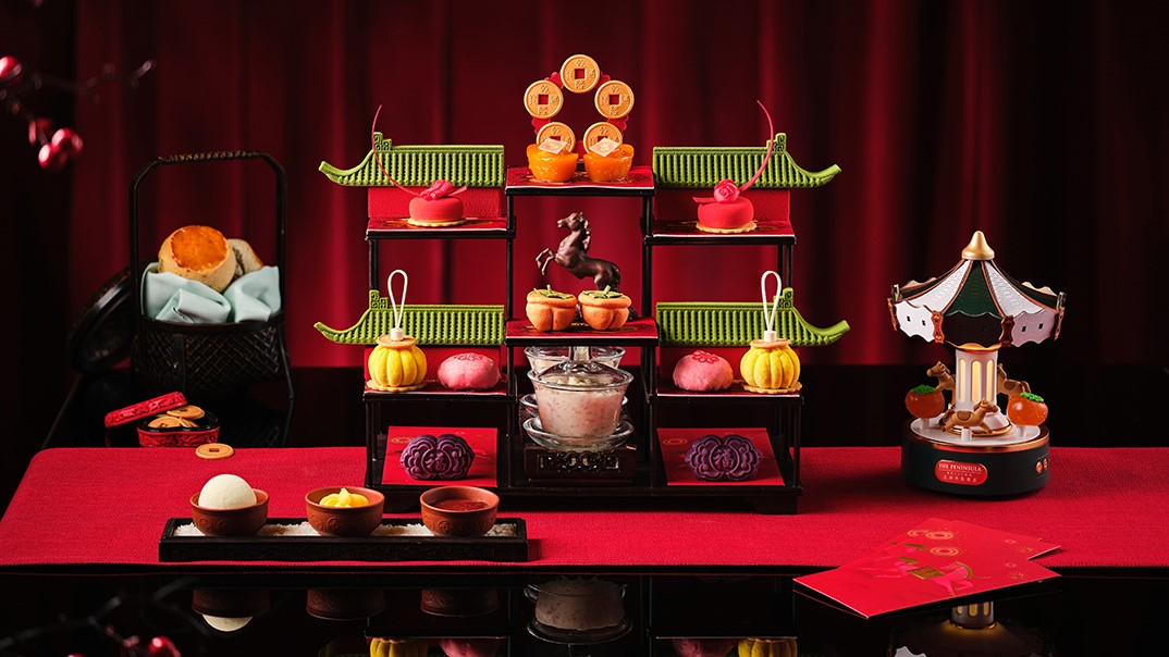 새봄의 화려한 색채, 경축의 상징, 축복이 가득한 전통 의미를 영감으로 삼아 "신년맞이 오후 차 (驰骋迎新半岛下午茶)"는 축제 미각의 여행으로 손님을 맞이한다. 생동감 있는 모양과 길조를 의미하는 정교한 디저트는 금원보, 금화, 등불과 복주머니 등 고전적인 상징을 영감으로 삼아 전통 문화를 오후 차 의식에 교묘하게 융합하여 명절에 우아함과 기쁨을 더했다.