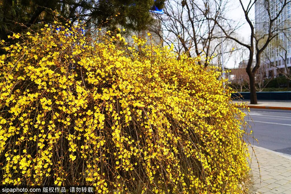영춘화는 베이징에서 어디서나쉽게 볼 수 있다. 그것들은 울타리에 기대어 있거나, 층계에 엎드리워져 있고, 강가에 늘어져 있으며, 가느다란 꽃잎으로 봄의 첫 꿈나라를 엮고 있으며, 눈을 뗄 수 없는 봄 풍경이 된다.