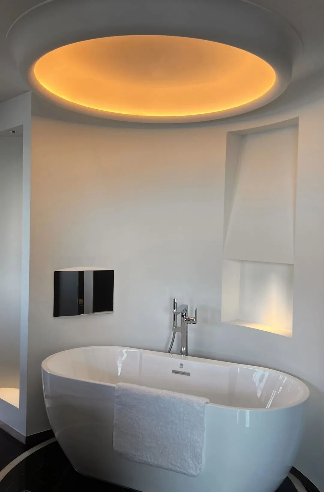 모든 객실은 몸과 마음을 치유하기 위해 설계되었다. 독립 욕조를 기능과 시각의 초점으로 삼아 여행의 피로를 풀게하여, 따뜻한 물속에소 모든 고민이 부드럽게 해소된다. 파노라마 창문은 빛을 최대한 끌어 들이고, 방은 밝고 탁 트여 있으며, 낮에는 골목의 청기와가 이어져 있어 고풍스러운 분위기가 한눈에 들어온다. 밤에는 창가에 기대어 멀리 바라보면, 국제 무역의 불빛이 손에 잡힐 듯하며, 고금의 융합된 낭만이 이곳에서 조용히 펼쳐진다.