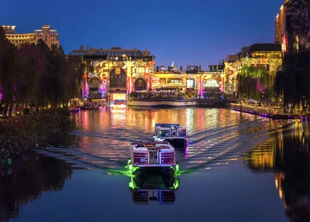 량마허 강변, 차오양 공원에서 시작된 2025 베이징 차오양 국제등광 소비시즌은 밤을 비추는 야간 관광 성대한 풍경을 조성하며, 다양한 빛과 그림자 쇼와 특별 공연을 선보인다.